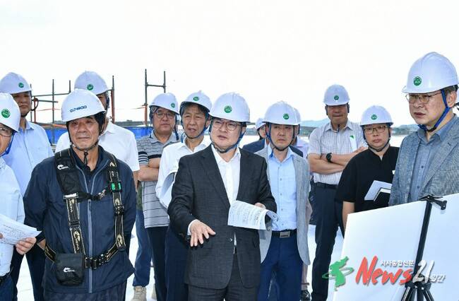 김병수 시장과 김포시 간부공무원들이 29일 해양수산부 어촌뉴딜사업으로 추진 중인 대명항 수산물직판장 신축공사현장을 방문해 진행 상황을 점검하고 향후 운영 방향을 논의했다. 이번 방문은 어업인들의 숙원 사업인 직판장 건립 추진 상황을 직접 확인하기 위해 마련됐다.
