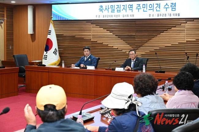 (뉴스21일간/최원영기자)=울주군의 가축사육 거리를 제한에 따라 축사가 특정 지역에 집중되고 있는 가운데, 이에 따른 생활피해를 호소하는 두동면 월평마을 주민들의 의견을 수렴하기 위한 간담회가 1일 울주군청 이화홀에서 열렸다.