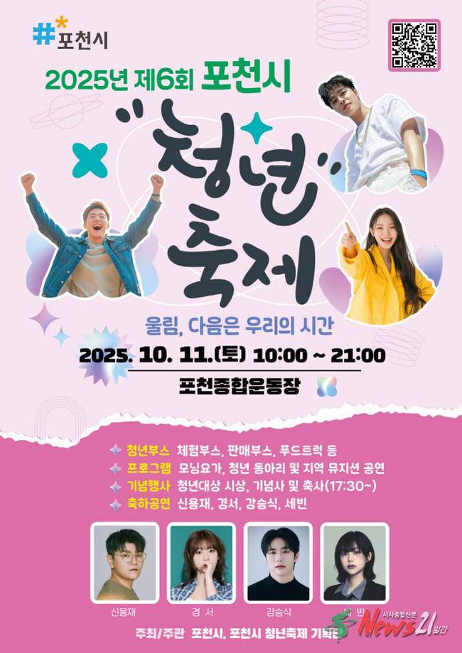 포천시(시장 백영현)는 오는 10월 11일 포천종합운동장에서 ‘2025년 제6회 포천시 청년축제’를 개최한다.