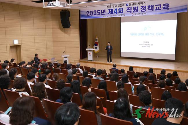 울산 동구는 10월 17일 오전 10시 30분 동구청 5층 중강당에서 전 직원을 대상으로 ‘직원들의 바른 정책 길잡이: 2025 동글맵 서비스’ 제4회 직원 정책교육을 진행했다.