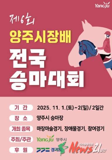 시 관계자는 “양주시장배 전국 승마대회는 해를 거듭할수록 전통과 명성을 쌓아가고 있다”며 “많은 시민과 승마인들이 함께 즐길 수 있는 축제의 장이 되도록 최선을 다하겠다”고 전했다.