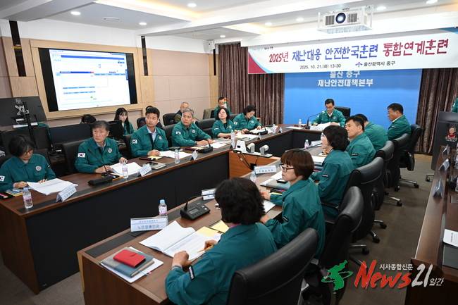 (뉴스21일간/노유림기자)=울산 중구(구청장 김영길)가 10월 21일 오후 1시 30분 울산혁신도시복합혁신센터에서 2025년 재난대응 안전한국훈련을 실시했다.