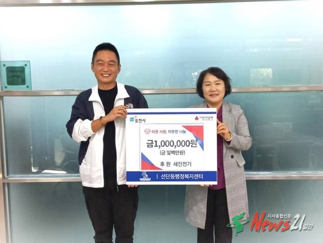 세진전기 대표 최두형은 “지역사회의 일원으로 사회적 책임을 다하고자 이번 기부를 결정했다”며, “앞으로도 지속적인 나눔 활동을 통해 지역사회와 함께 성장해 나가겠다”고 말했다.
