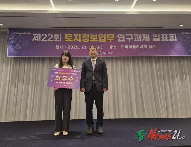 울산 동구가 지난 10월 21일 열렸던 ‘2025년 울산시 토지 정보 업무 연구과제 발표회’에서 최우수 과제로 선정되어 울산시장 표창을 받았다.