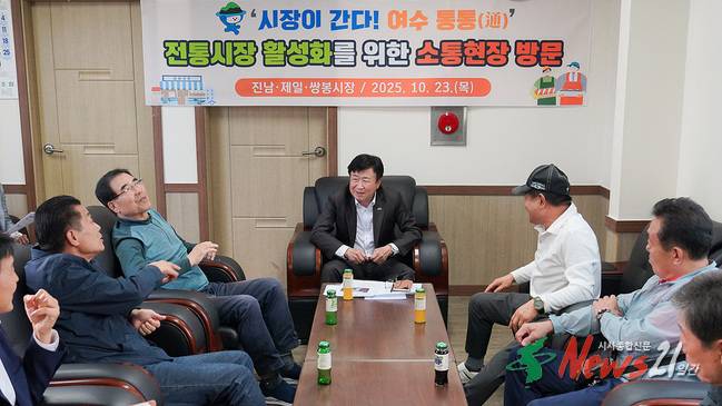 ▲ 사진=여수시청정기명 여수시장이 지난 23일 오후 지역 전통시장인 진남시장, 제일시장, 쌍봉시장을 잇달아 방문해 상인과 시민들의 목소리를 듣고 소통의 시간을 가졌다.