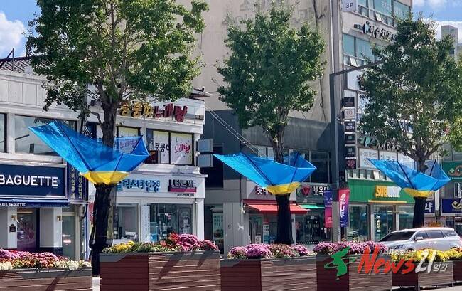▲ 사진=여주시여주시는 시청 앞 세종로 은행나무 가로수 22주에 낙과 수집기를 시범 설치했다.