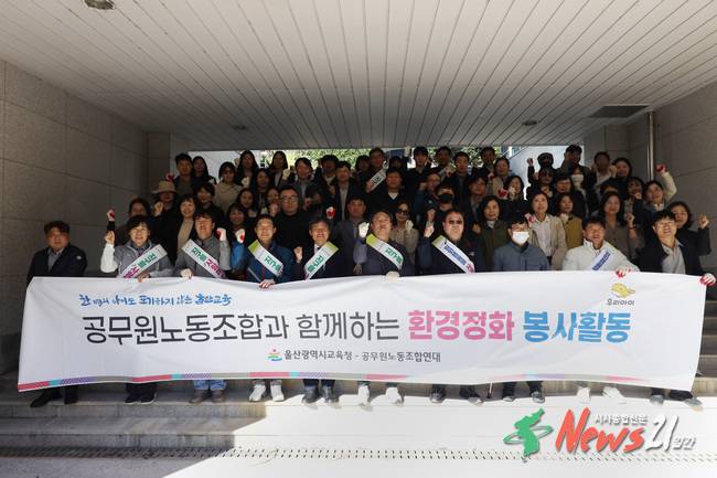 울산광역시교육청(교육감 천창수)은 27일 중구 혁신도시 일원에서 울산광역시교육청공무원노동조합연대와 함께 ‘노사 공동 가을맞이 환경정화 활동’을 했다.
