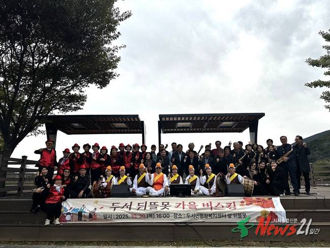 ▲  울주군청(뉴스21일간/최원영기자)=울주군 두서면 주민자치위원회(위원장 박정수)가 30일 두서면 행정복지센터 앞 뒤뜰못에서 가을버스킹 공연을 실시했다.