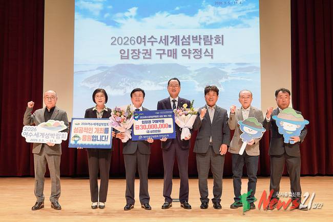 ▲  사진=여수시청여수시(시장 정기명)는 지난 30일 여수문화홀에서 지역 전문건설업체 종사자 200여 명이 참석한 가운데 직무교육과 2026여수세계섬박람회 입장권 구매 약정식을 함께 개최했다.
