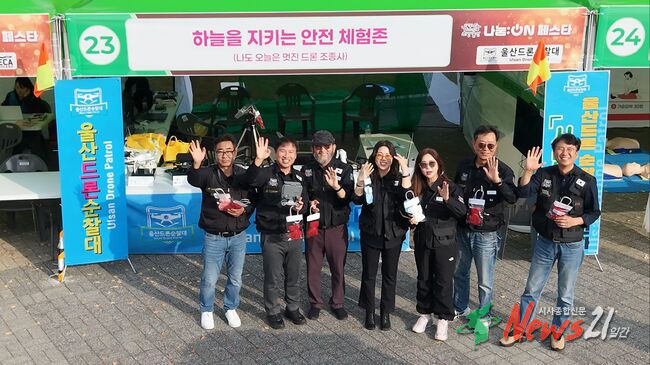 (뉴스21일간/노유림기자)=울산드론순찰대(대장 임용근)가 지난 2025년 11월 7일 울산문화공원에서 열린 『프로젝트 나눔:ON 페스타』에 참여하여 시민들을 위한 드론 안전 체험 부스를 성공적으로 운영했습니다. 울산광역시자원봉사센터가 주최한 ‘따뜻한 나눔이 켜지는 순간’ 주제의 『프로젝트 나눔:ON 페스타』 참여 , "하늘에서 지키는 안전체험존 – 나도 오늘은 드론 조종사" 부스 운영. 순찰·수색에 활용되는 적외선카메라 탑재 산업용 드론 및 고해상도 촬영 드론 등을 전시, 재난 대응 및 시민 안전 확보를 위한 드론의 공익적 활용 소개. 드론 시뮬레이터 활용 조종 체험 및 실제 드론 비행 시연을 통해 시민들이 '안전의 주체'로서 역할을 직접 체감하는 기회 제공했습니다.