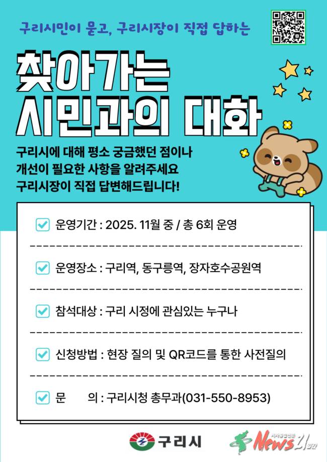 구리시(시장 백경현)는 지난 11월 10일 구리역에서 ‘찾아가는 시민과의 대화’를 개최했다고 밝혔다. 이번 행사는 제40회 시민의 날을 맞아 시민과의 소통을 한층 강화하기 위해 마련된 프로그램으로, 11월 10일부터 27일까지 진행되는 ‘찾아가는 시민과의 대화’의 첫 일정이다.