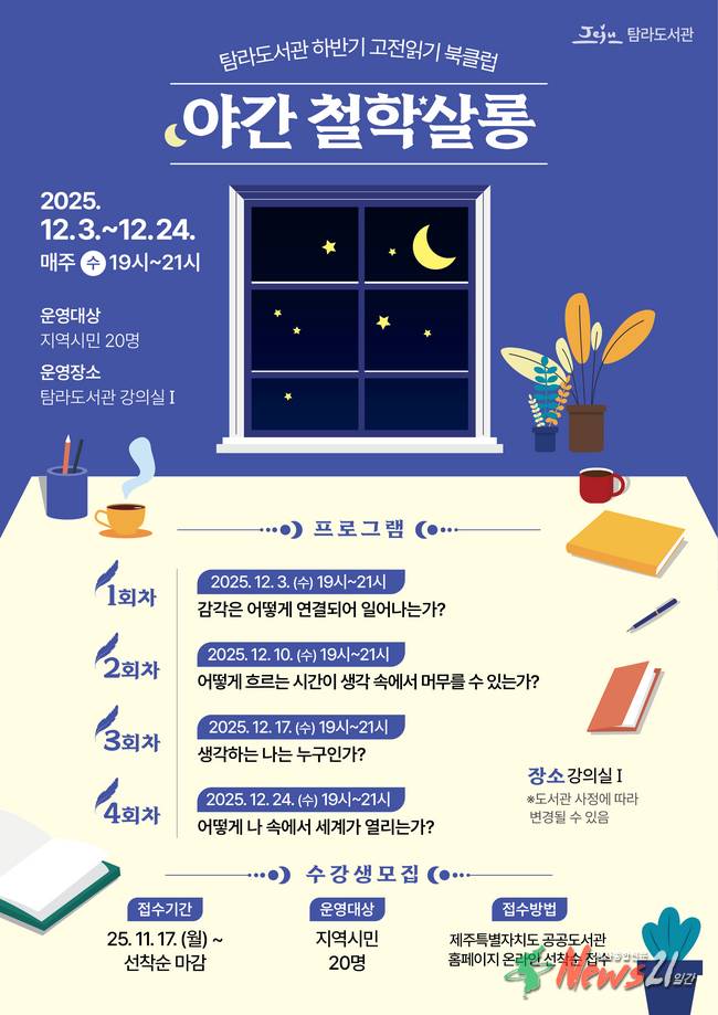 ▲ 사진=제주시 탐라도서관이 시민들과 함께 칸트의 『순수이성비판』을 읽으며 인간의 자아정체성을 탐구하는 ‘야간 철학살롱’ 프로그램을 운영한다.