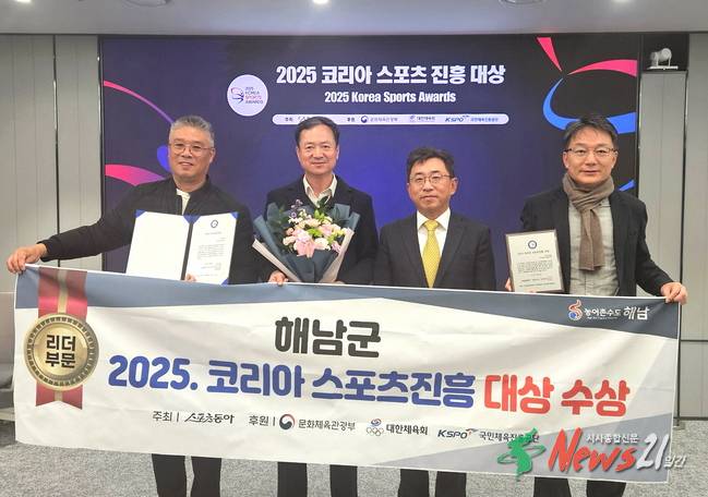 ▲ 사진=해남군청해남군이 2025 코리아 스포츠진흥대상에서 리더부문 대상을 수상하며 스포츠마케팅 역량을 인정받았다.