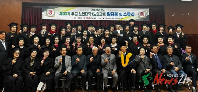▲ 사진=남양주시청남양주시(시장 주광덕)는 지난 20일 대한노인회 남양주시지회가 노인대학 제30기 수료식을 개최했다고 밝혔다.