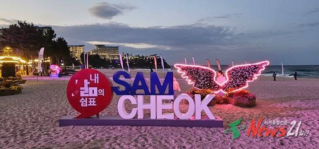 숙소들은 해안선을 따라 바다를 바라보는 전망대가 되니 이른 아침 차가운 바닷바람이 부담스러운 여행자라면 잠자리에서 일출을 감상해보자. 주말에는 청량리에서 출발하는 환상의 해안선 열차가 서는 곳으로 붉은 가로등이 켜진 백사장의 밤바다 풍경은 독특한 매력을 풍긴다. 매년 여름이면 맨손으로 넙치잡기 대회가 열려 피서객을 즐겁게 해주며 인근 새천년 해안도로와 연결한 드라이브 코스로도 인기다.