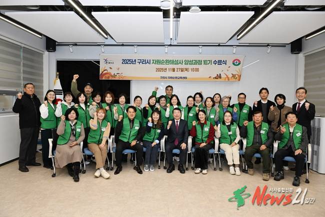 구리시(시장 백경현)는 지난 11월 27일(목) 자원순환 교육센터에서 ‘자원순환 해설사 양성 10기 과정’ 수료식을 개최했다고 밝혔다.