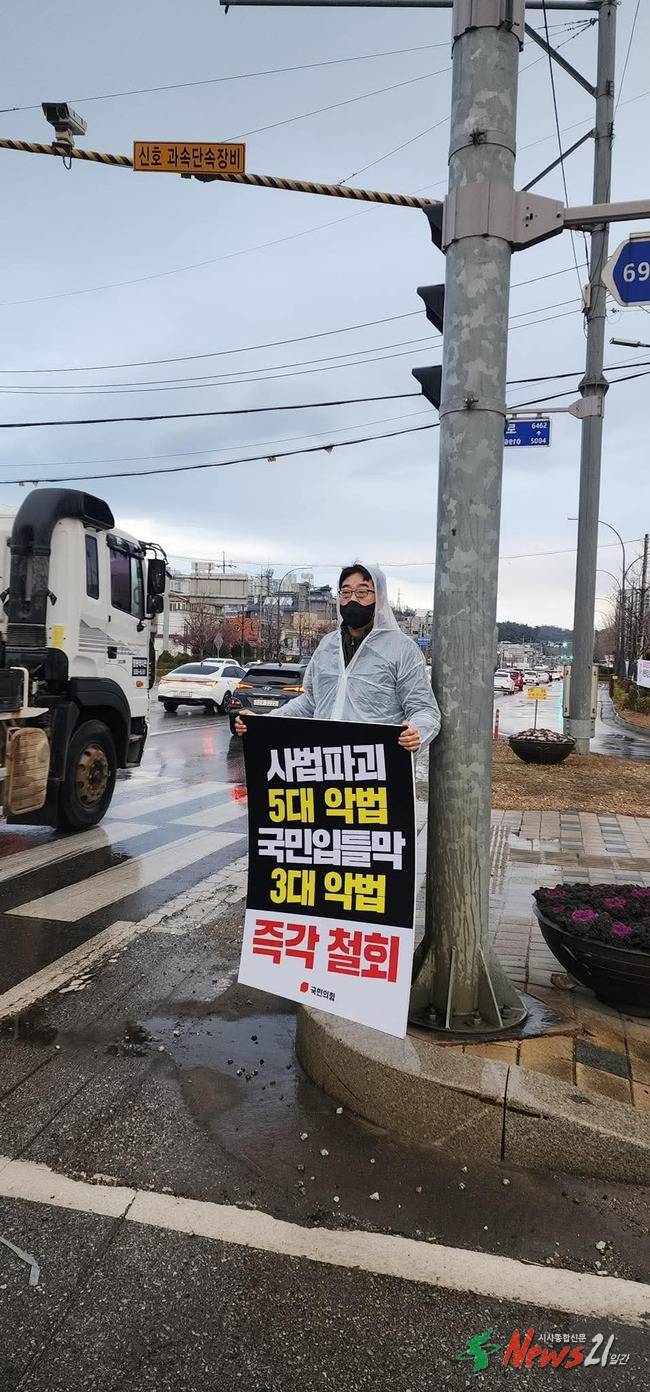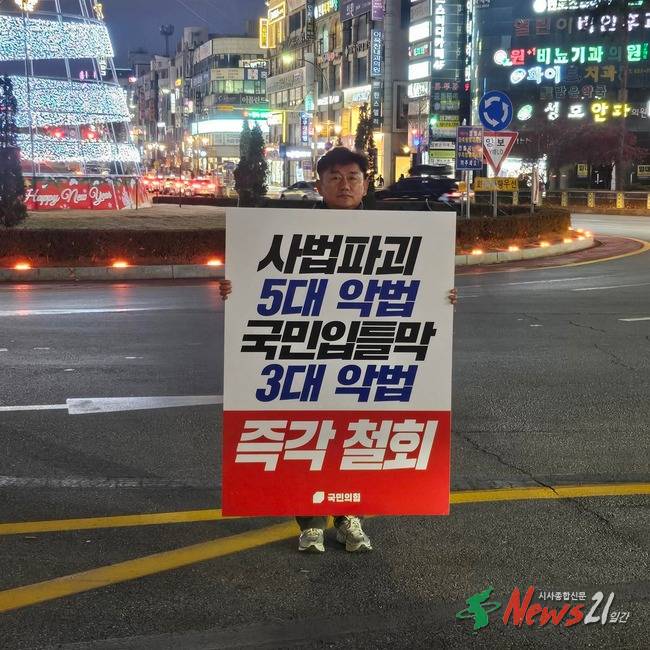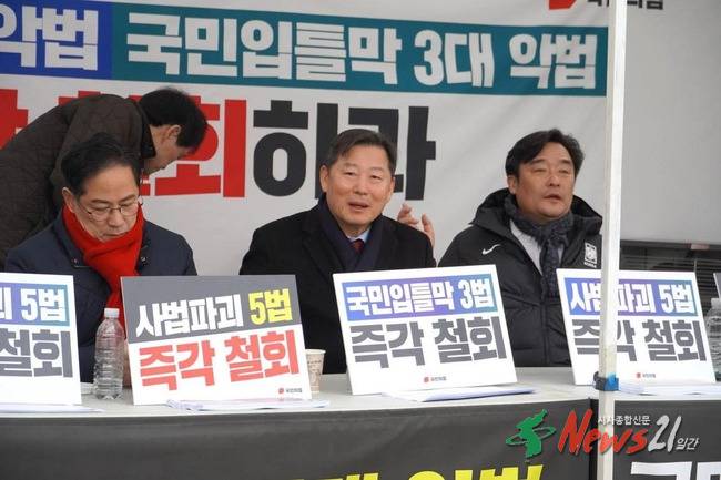 당 지도부와 의원들은 국회 본청 앞 등에서 천막 농성과 피켓 시위를 벌이며 법안 철회를 촉구하는 여론전을 전개했다.