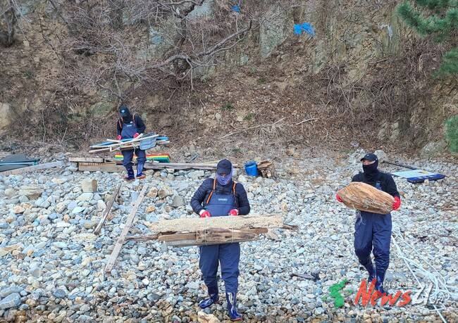 울산 동구는 2월 20일 오전 대왕암공원 출렁다리 밑 해안 일대에서 해양쓰레기를 수거하는 해안 정비 활동을 했다.