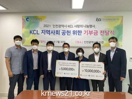 인천광역시(시장 박남춘)는 7월 30일 KCL(한국생활환경건설시험연구원)과 협력해‘사랑의 나눔행사’를 개최하고 KCL로부터 1천5백만 원의 기부금을 인천사회복지공동모금회와 아동양육시설인 향진원에 전달했다고 밝혔다.
