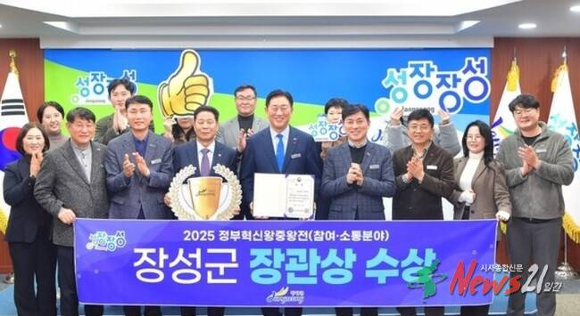 ▲ 사진=장성군청장성군이 ‘정부혁신 왕중왕전’ 국민과 함께 만드는 참여·소통 혁신분야에서 행정안전부 장관상을 수상했다.