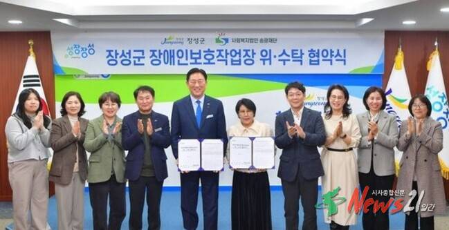 ▲ 사진=장성군청 보도자료장성군이 11일 사회복지법인 송광재단과 장애인직업재활시설(장애인보호작업장) 운영 위·수탁 협약을 체결했다.