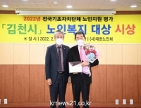 김천시는(시장 김충섭)는 사단법인 대한노인회에서 주최하는 2022년 제1회대한노인회 노인복지대상 기초자치단체분야에서 경상북도 유일하게“대상”을수상하는 쾌거를 거뒀다. 김천시는 초고령사회에 발맞춰 2022년 전체예산 1조 2,300억원 중 10%이상인 1,260억원을 노인복지예산으로 편성했다. 특히 어르신들의 활발한 노후생활과 함께 일자...