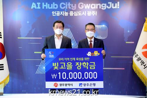 광주광역시는 21일 광주은행이 빛고을장학금으로 1000만원을 기탁했다고 밝혔다.