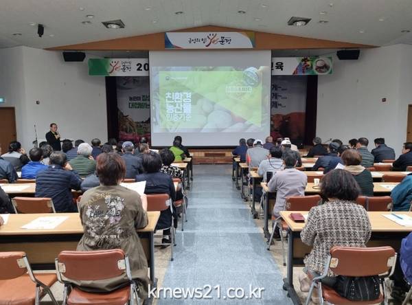 문경시농업기술센터(소장 이경호)는 3월 21일(화) 관내 친환경 농산물 인증 교육 대상 농가 및 신규 인증 희망 농가 80여명을 대상으로 농업기술센터 4층 대강당에서 집합교육을 실시하였다.