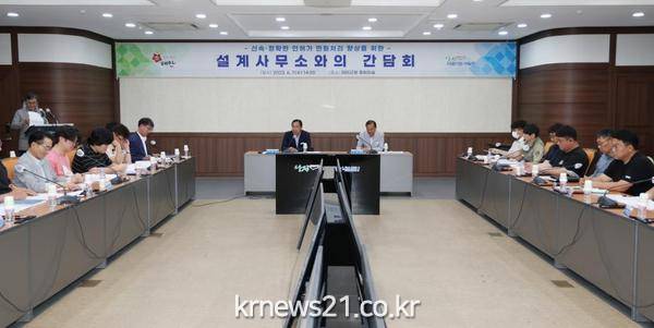 이번 간담회는 상호 간 적극적인 소통을 통한 원활한 업무 교류를 도모하기 위한 것으로, 관내 건축·토목·산지·환경 분야 총 24개 설계사무소 관계자가 참석했다.