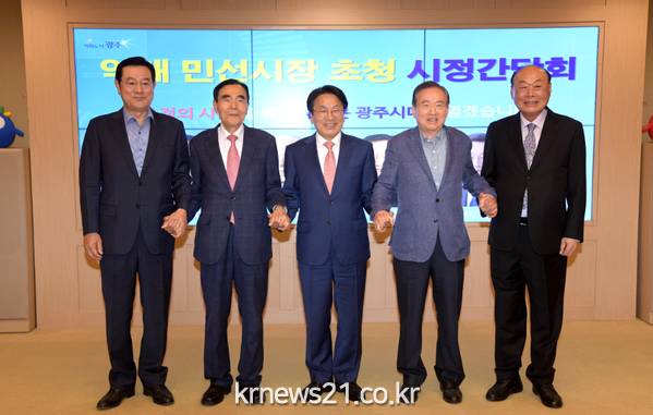 광주광역시(시장 강기정)는 19일 시청 비즈니스룸에서 역대 민선시장을 초청해 간담회를 개최했다.