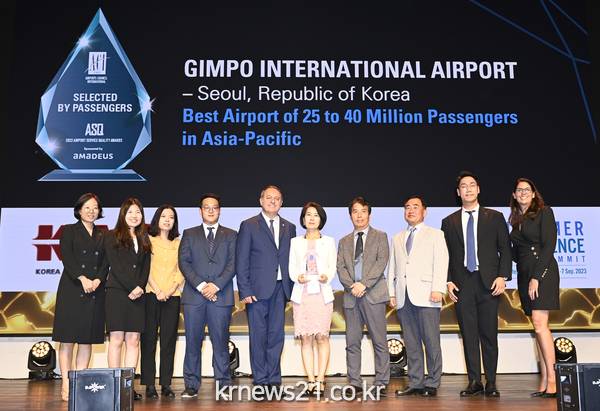 한국공항공사(사장 윤형중)는 6일 인천 파라다이스시티호텔에서 열린 국제공항협회(ACI) 주관 ‘세계공항서비스평가 시상식(ASQ Awards)’에서 김포국제공항이 우수공항으로 선정됐다고 밝혔다.