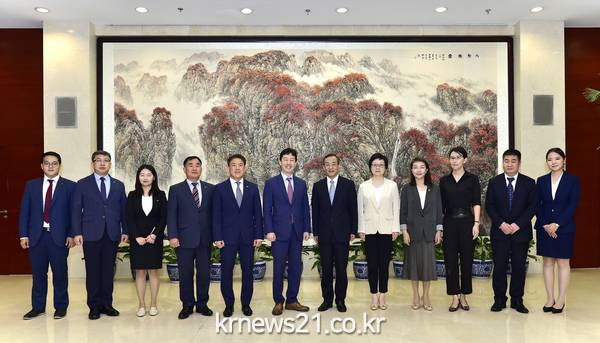 1. 윤형중 한국공항공사 사장(왼쪽으로부터 6번째)과 왕창이 수도공항그룹 회장(왼쪽으로부터 7번째)이 회담을 마치고 기념촬영을 하고 있다.