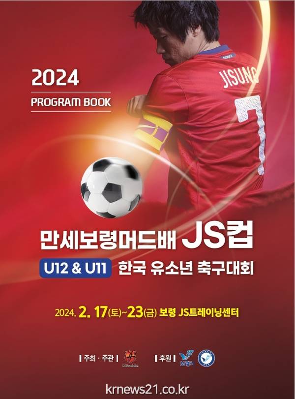 보령시는 오는 2월 17일부터 23일까지 7일간 박지성보령스포츠트레이닝센터에서 ‘2024 만세보령머드배 JS CUP U12&11 한국유소년 축구대회’를 개최한다고 밝혔다.