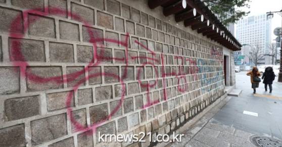 경복궁 담벼락 '낙서 테러'를 교사혐의 남성 검거