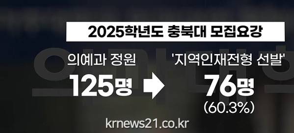 2025학년도 정원 125명 가운데 76명을 지역인재전형, 즉 충북에서 고등학교를 마친 학생들로만 선발한다.