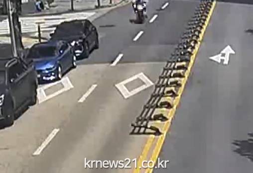 중앙분리대 한 부분이 기울어지더니, 도미노처럼 줄줄이 쓰러졌다.