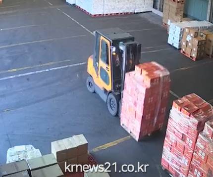 이윽고, 보세 창고에서 꺼내 온 비슷한 색깔의 상자들이 비워진 자리에 채워진다.