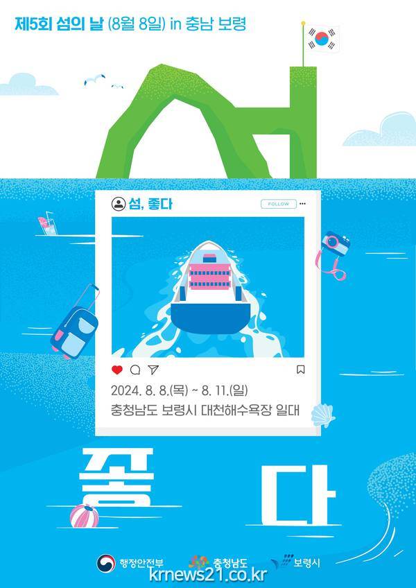 보령시에서 8일부터 11일까지 3박 4일간 동안 대천해수욕장 일원에서 섬의 가치와 중요성을 널리 알리고, 보령의 아름다운 섬을 홍보하기 위한 ‘제5회 섬의 날’ 행사가 펼쳐져 보령의 여름을 더 뜨겁게 할 예정이다.