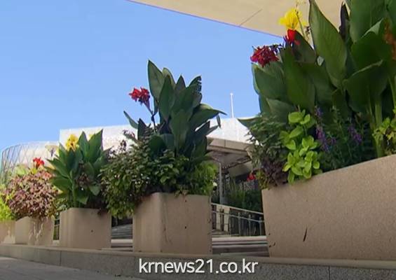 기존에 심었던 조경용 꽃들이 집중호우와 장기간 폭염 등으로 고사하는 일이 잇따르자 도심 화단을 아예 열대식물로 꾸민것이다.
