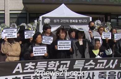교육계와 장애인 단체는 숨진 교사가 생전 한 학급당 6명인 법적 정원보다 많은 학생 8명을 맡으며 격무를 호소해 왔다고 전했다.