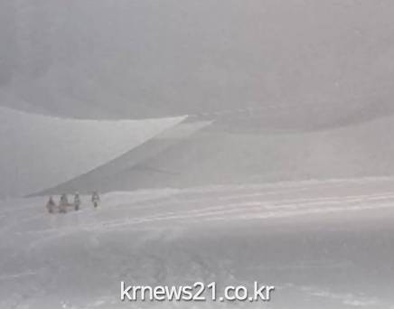 쌓인 눈의 무게를 천장이 버티지 못한 건데, 이 사고로 행인 2명이 중상, 1명이 경상을 입고 병원으로 옮겨졌다.
