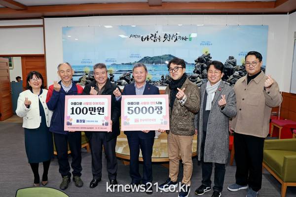 제주시는 12월 13일(금) 사)따뜻한 한반도 사랑의 연탄나눔운동(이사장 이동섭)로부터 연탄 5,000장(500만 원 상당)과 겨울이불 11채(100만 원 상당)를 전달받았다.