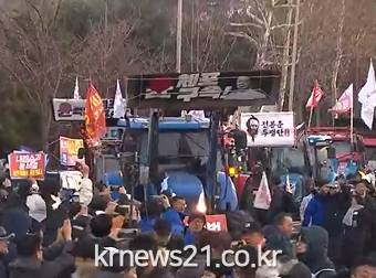 윤석열 대통령의 퇴진을 촉구하며 전국에서 트랙터를 몰고 상경한 농민들이 어제저녁 대통령 관저가 있는 용산에서 집회