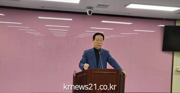 ▲ 박영순 전 구리시장이 12일 오후2시 구리시의회 브리핑룸에서 기자 간담회를 열었다.