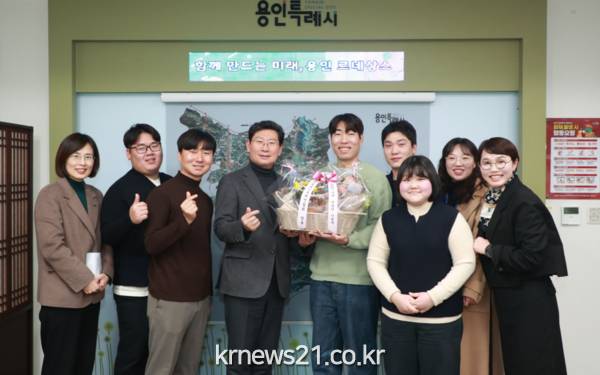 이상일 용인특례시장은 17일 시장실에서 4-H연합회 임원들과 신년 인사를 나누고 청년 농업인들과 소통하는 시간을 가졌다.