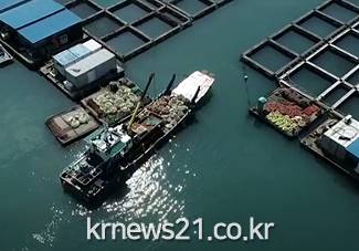 이달 초 강추위로 저수온 특보가 내려졌던 전남 여수의 해상 양식장이다.