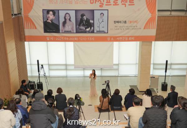 서천군은 지난 20일 정오, 서천군청 청사 로비에서 ‘2025년 청사 마실 프로젝트’의 첫 번째 행사로 팝페라 공연을 성황리에 개최했다.