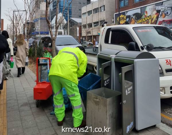 - 주말 가로쓰레기통 관리로 쓰레기통 넘침 현상 예방 등 효율적인 거리 환경 정비