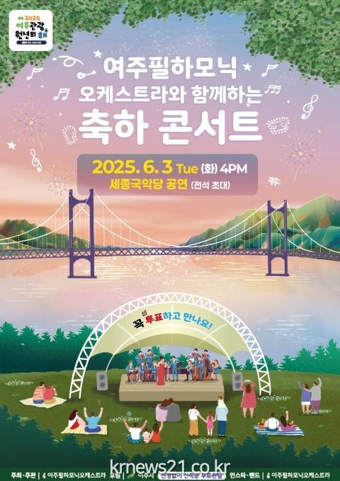 여주필하모닉오케스트라(대표 이정예, 단장 박영규)는 오는 6월 3일(화) 오후 4시, 세종국악당에서 「2025 여주 관광원년의 해 기념 축하 콘서트」를 개최한다.