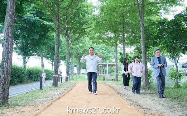 여주시는 공사가 진행 중인 흙향기 맨발길 조성 현장을 점검했다.